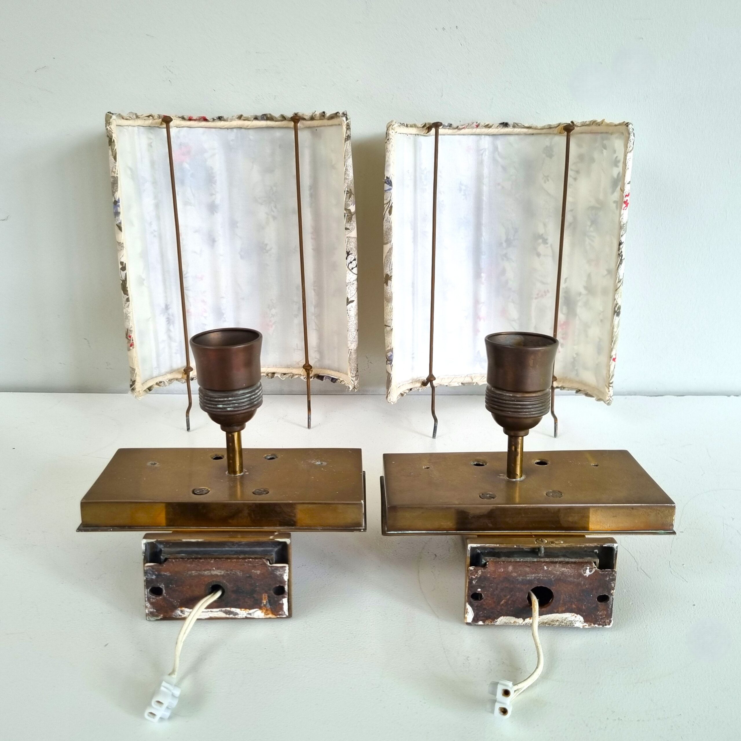 Pair Solid Brass Wall Fixtures With Original Screens, France 40s
